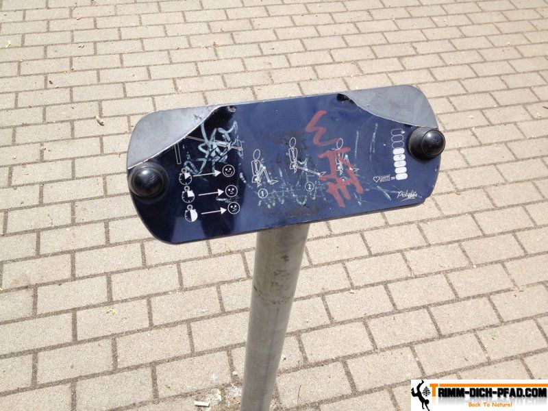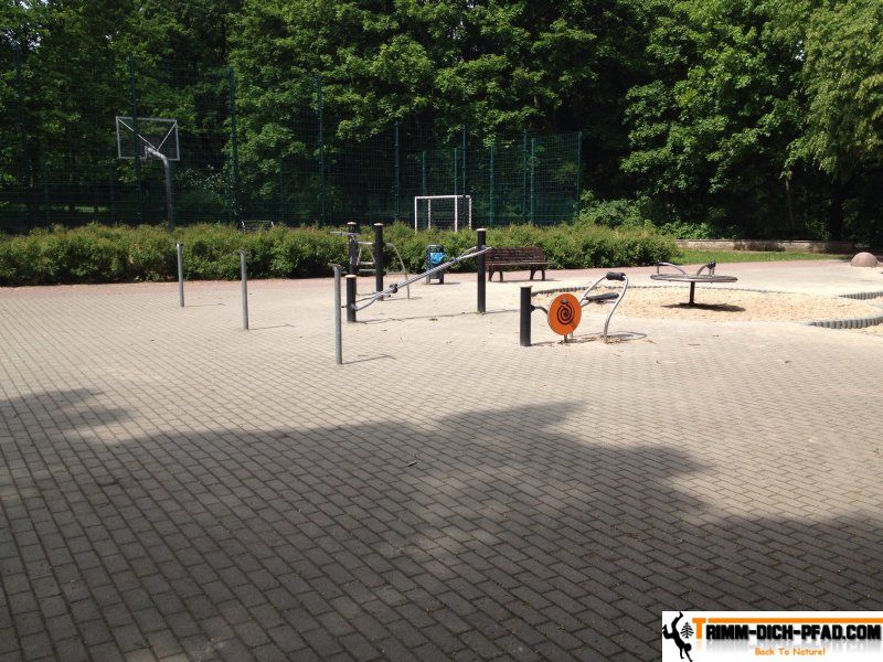 Es sind drei Fitnessgeräte, mit je einer Übungstafel, und einer Balancierstrecke. Die Geräte sind allesamt robust verarbeitet und funktionieren einwandfrei, bis auf die Rudernaschine. Bei ihr fehlt der bewegliche Sitz. Die Anlage macht einen sauberen Eindruck.